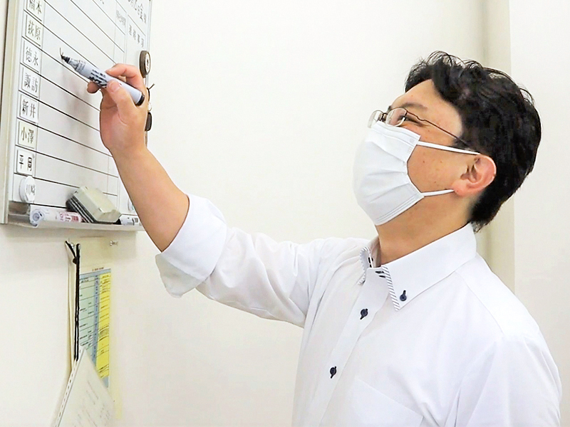 お客様のご注文通りに作業を進めるため、製造現場や出荷の管理をします。製造現場全体の総監督のような役割です。